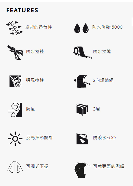 【適合活動:TOURING滑雪、登山、自行車】【剪裁:一般】【防水係數:15,000mm】