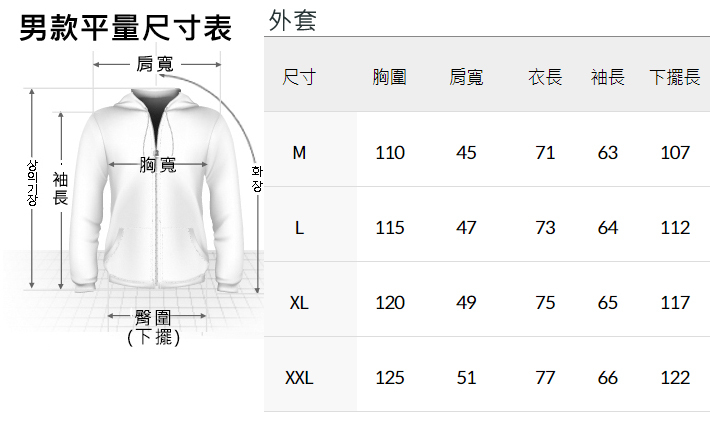 ■ 可拆式帽兜,下擺可調節的鬆緊帶設計,袖口魔術氈設計
