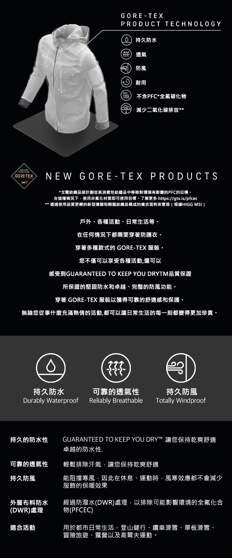 ■ 完美的防水防風Gore-tex 2L材質、防水拉鍊和接縫處理,完全保護身體免受雨水侵擾的防水外套