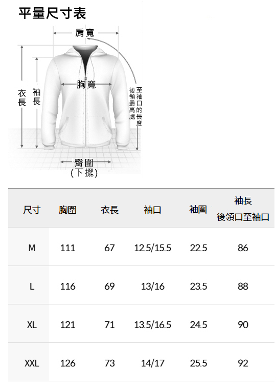 ■ 帽兜、下擺束繩設計及袖口魔鬼氈可防止寒風進入,提供出色的防風保護