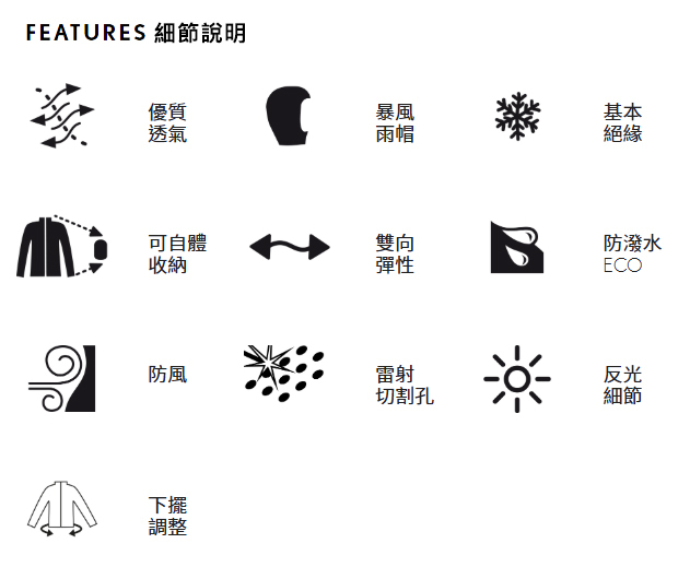 胸部和上背部易受寒處採用輕量 cambium® AIR ,擁有出色的保暖性能與高透氣度。