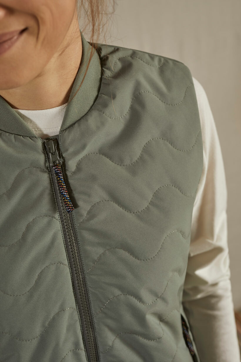 多功能日常通勤保暖背心,外層表布經 PFC-Free 處理,具有防風和防潑水性能。