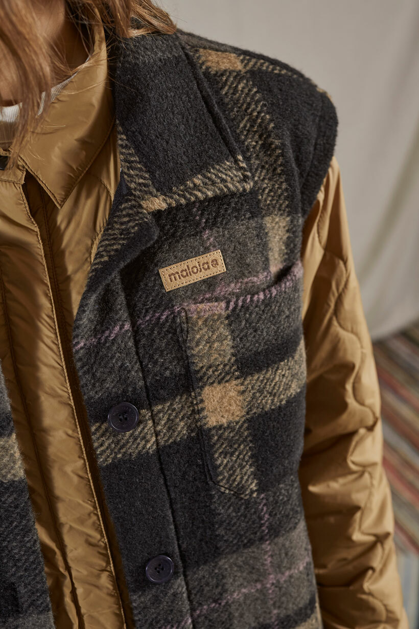 背心略為寬鬆的設計很適合多層次穿搭,襯衫領、胸前及兩側口袋、圓弧下擺的設計靈感來自襯衫外套風格。