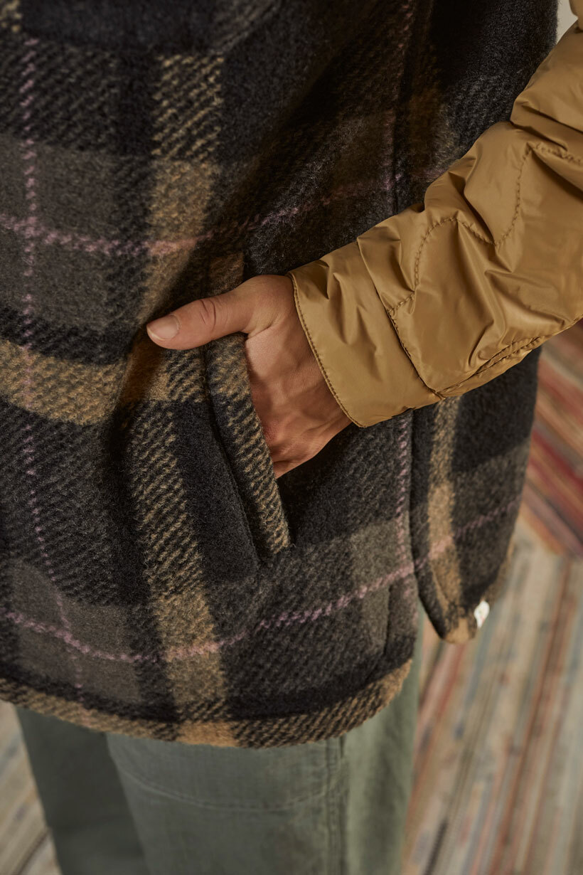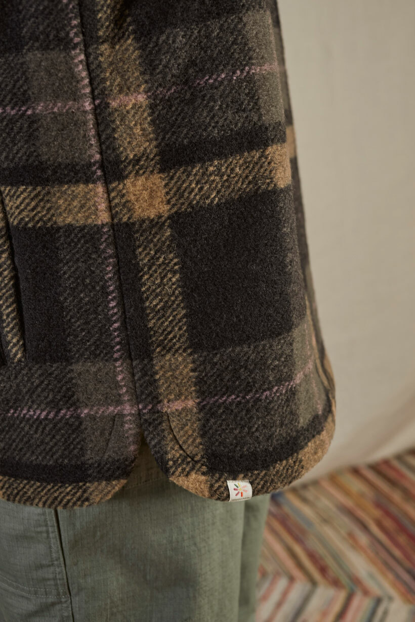 Wool Check 面料是由聚酯纖維和羊毛混合製成,質地溫暖柔軟帶有天然手感,適合寒冷的天氣。