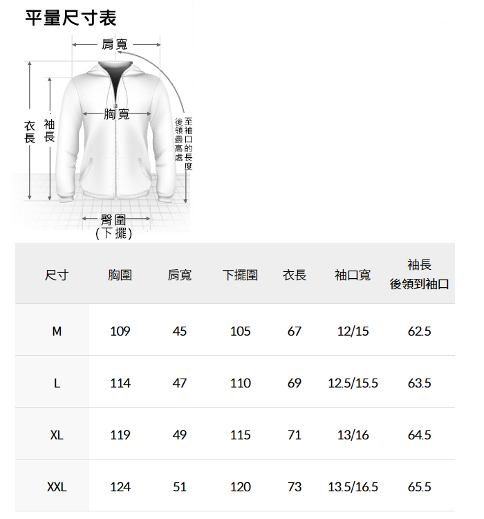 ■ 袖口採用魔鬼氈設計方便調整鬆緊