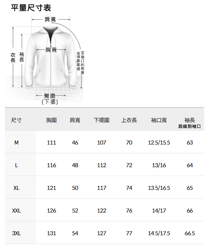 ■ 袖口採用魔鬼氈設計方便調整鬆緊