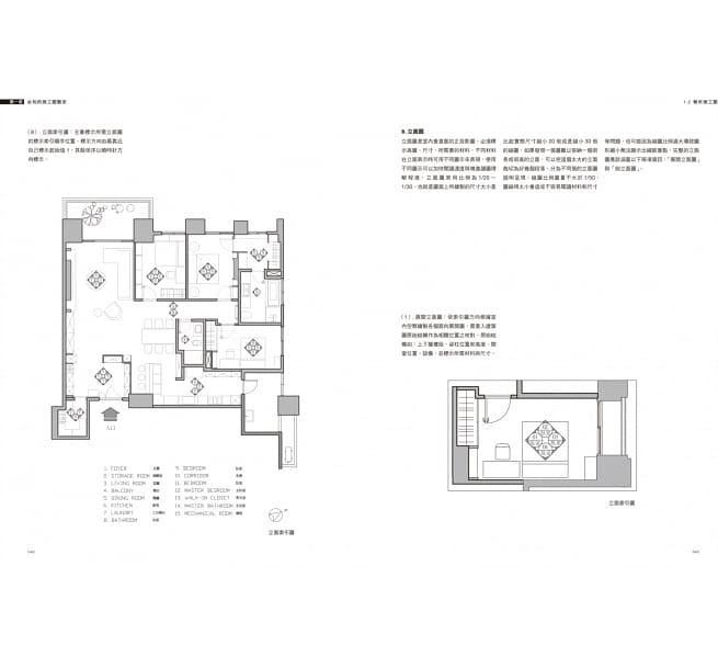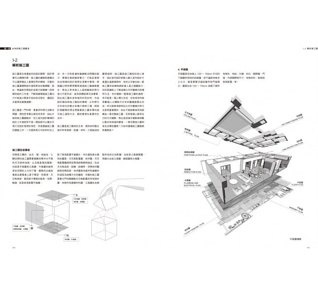 還記得筆者大學念建築的當年,我一直在想: 我的這個設計甚麼時候才會蓋得出來? 後來投入教育界,教書多年後,我明白了答案應該是⋯⋯不會被蓋出來,因為當年那個充滿創意的方案,缺乏了落實的施工圖。室內設計是一個兼具創意與實務的專業領域,方案的落實需要二者的相輔相成,缺乏創意流於匠氣,而缺乏實務則成為紙上建築。施工圖便是設計方案從創意到實務的重要媒介,然而國內的室內設計專業有其歷史發展的特殊性,在施工圖的表達上不似建築專業有固定的規範,各家事務所施工圖表達的方式,更是大異其趣。在缺乏具一致性的施工圖規範時,如何能使相關從業人員能夠具邏輯的了解施工圖的組成、內容與運用時機,顯得格外重要。