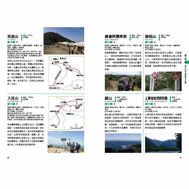 筑波山/入笠山/鎌倉阿爾卑斯/御岳山/鋸山/上高地自然研究路