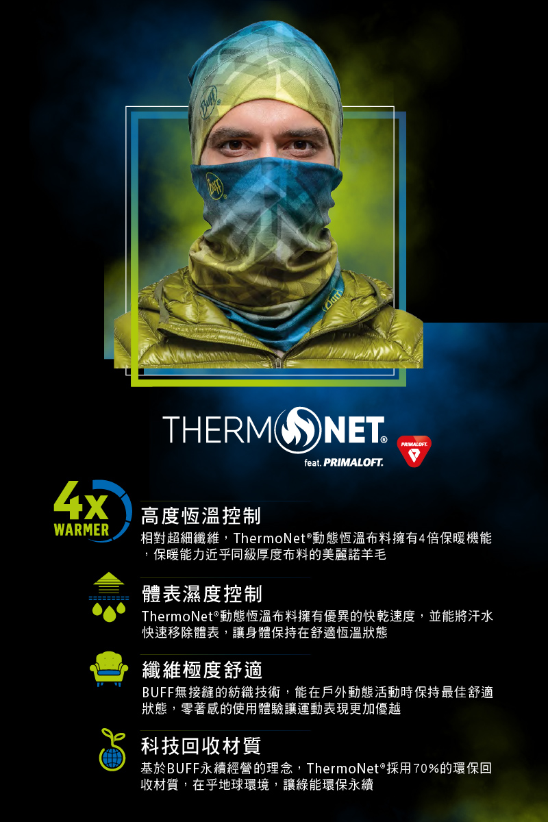 ● BUFF與Primaloft合作開發的 ThermoNet 獨家材質