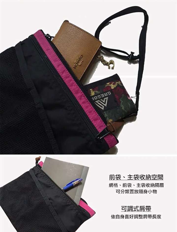 正面網狀開放式口袋和拉鍊口袋