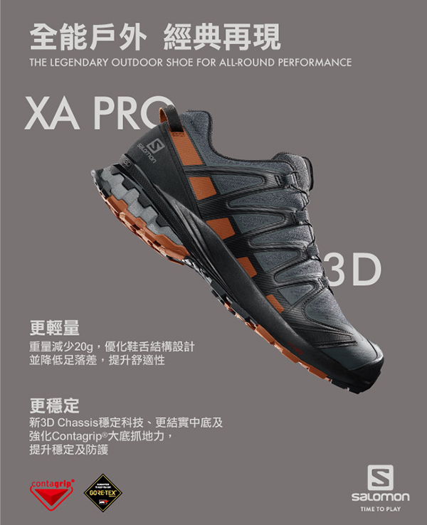 主打穩定性、耐用度和支撐性。XA PRO 3D V9 GORE-TEX是經典鞋款的最新力作,