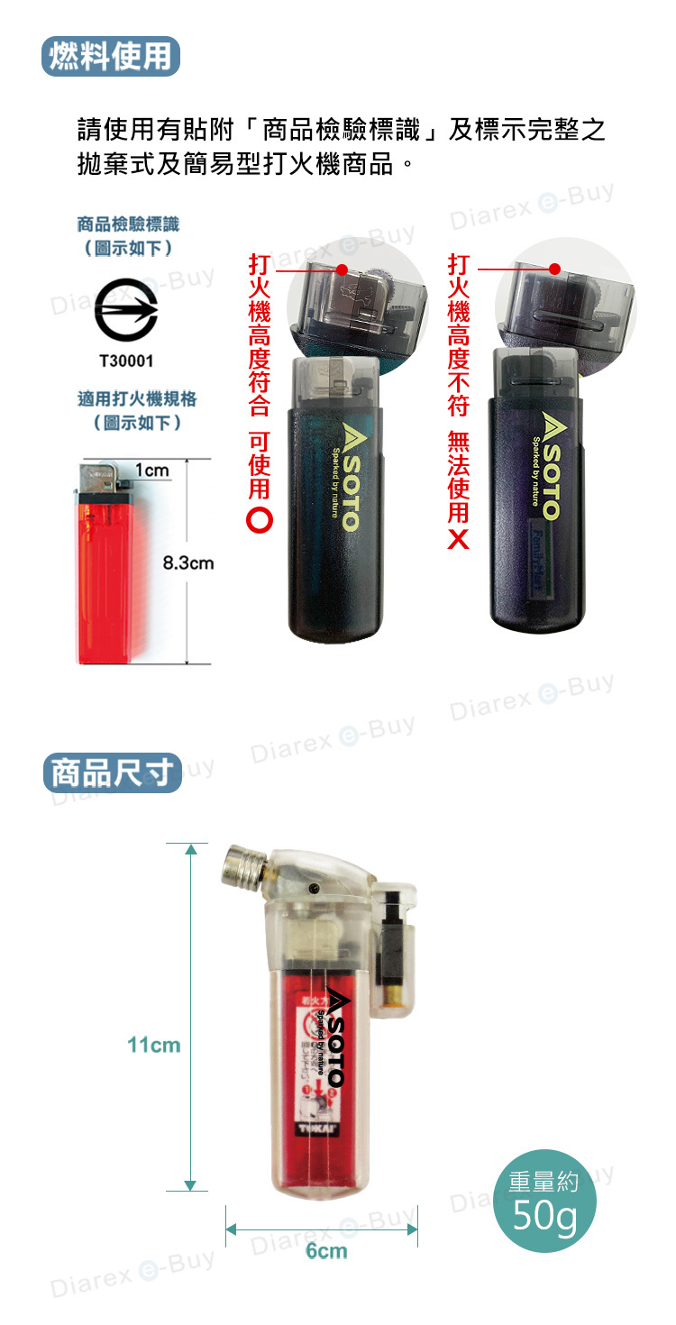 ● 將拋棄式打火機轉換成集中式火焰輸出,溫度可達1300℃的點火器。