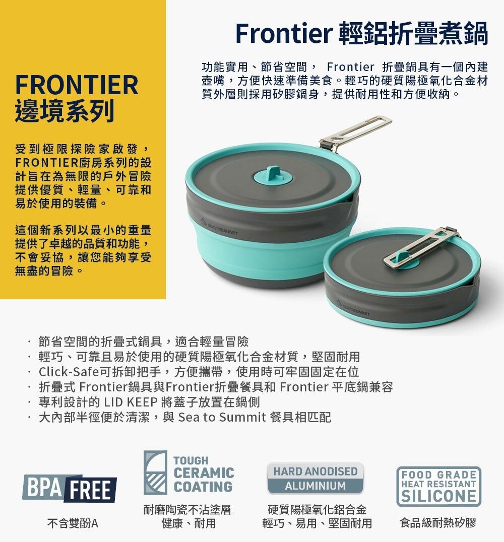 折疊式 Frontier鍋具與Frontier折疊餐具和 Frontier 平底鍋兼容