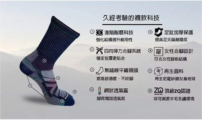 • Virtually Seamless™ 無縫線平織襪頭,提高舒適度、不咬腳